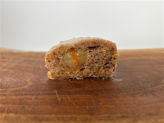 なんとこちら、直径約6㎝ほどの食べきりサイズが個包装になっており、カジュアルにお試しいただけるサイズ感。お味はかなり本格派で、これでもかと入っているオレンジピールの風味と、ナッツの食べ応えがたまらなく、シュトーレンには欠かせないマジパンもしっかりと入っています。たくさんは食べられないけれど、本格的なシュトーレンを食べたい!ご家族やご友人にもおすそ分けしたい!そんな方におすすめです♪