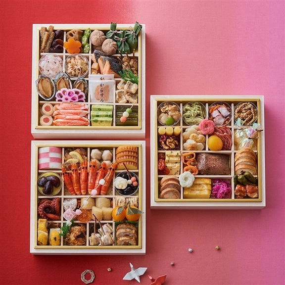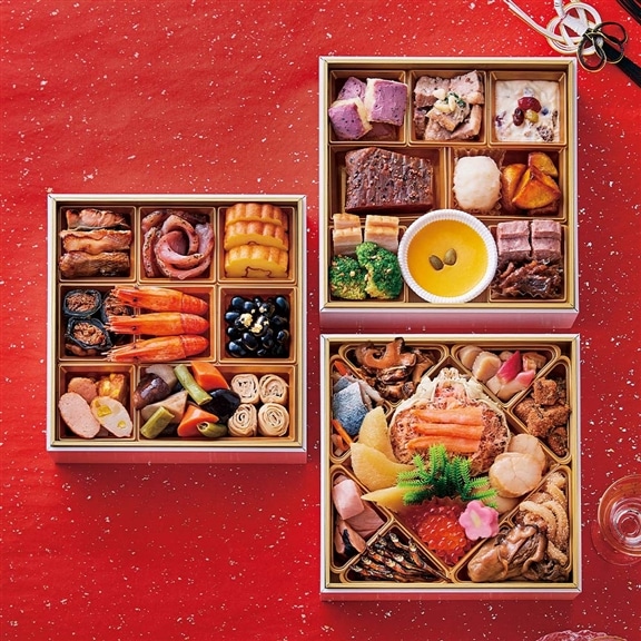 日本を代表するブランド食材を和洋のこだわりのレシピで仕上げた珠玉の三段重は、お正月はもちろん、大晦日のご馳走重としてもお楽しみいただけますよ。