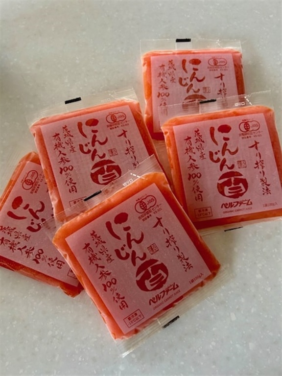 原材料は、茨城県つくば市の自社農園で育てられた国産有機にんじんのみ。