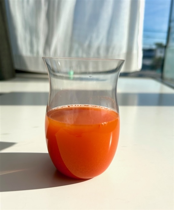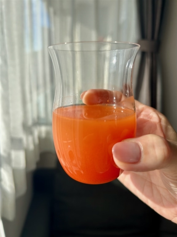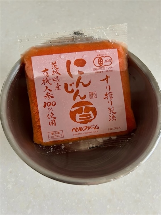 朝起きて、解凍したばかりのにんじんジュースを飲むと、