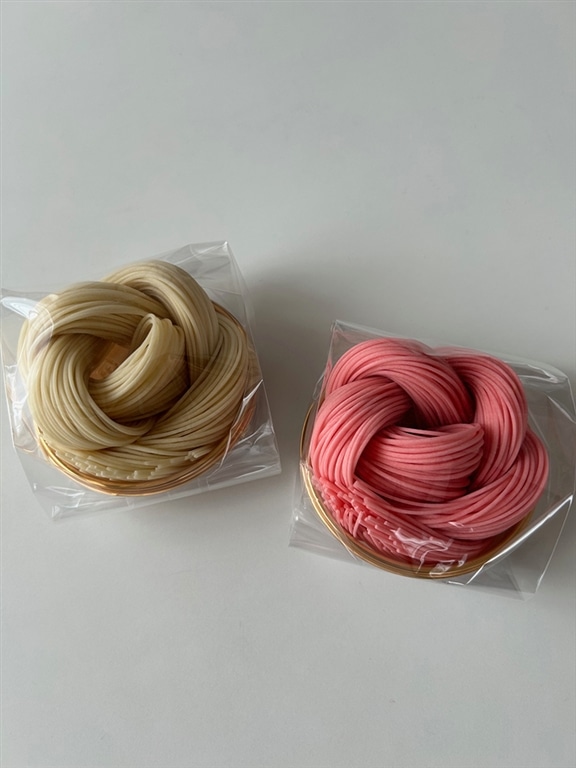 続いて、素麵の名産地 富山の『柿里』より、お花の形をした紅白のそうめん。