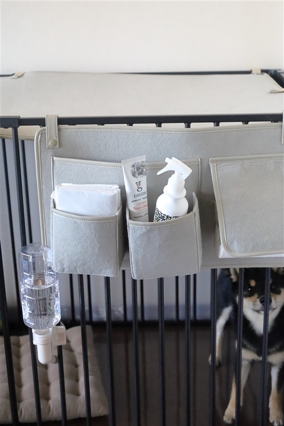 今回はミニサイズとLサイズの2つを購入しました。ミニサイズはこんなふうにサークルの側に置いてすぐにシュッと。Lサイズはリビングに置いて、遊ぶマットやぬいぐるみにシュッと。ミニサイズだと車でおでかけするときなど携帯用にも便利です。