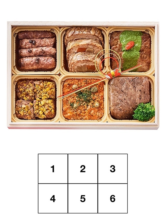 それぞれのお重はざっくり、上3品が和風、下3品が洋風となっており、「上段は日本酒、下段は赤(ワイン)でも白でも合うと思います。」とお酒を嗜まれるSuzukiさんも大満足の仕上がりです。